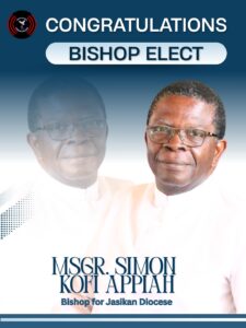 At the same time, with hearts full of hope, we share the Holy Father’s appointment of Rev. Fr. Simon Kofi Appiah as the new Bishop‑Elect of the Diocese of Jasikan. Until his appointment, he has been serving as a lecturer in the Department of Religion and Human Values at the University of Cape Coast.